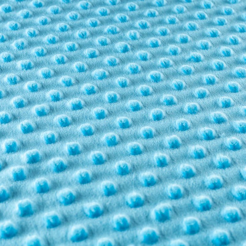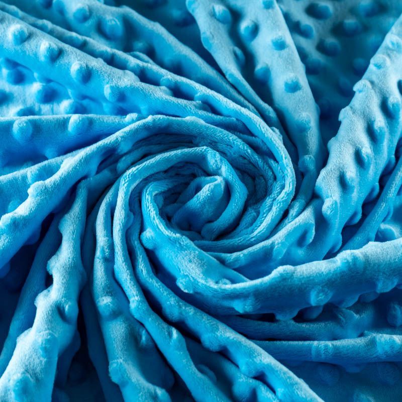 Мягкое, нежное, приятное на ощупь, с гладкой текстурой, красивым блестящим эффектом. Фактура – пузырьки. На лицевой стороне мягкий ворс 1 мм. Изнаночная сторона — гладкое трикотажное полотно без ворса. Используется для пошива покрывал, пледов, одеял, бортиков в кроватку, конвертов для новорождённых, мягких игрушек, комбинезонов, пижам, домашней одежды, лежанок для домашних питомцев.