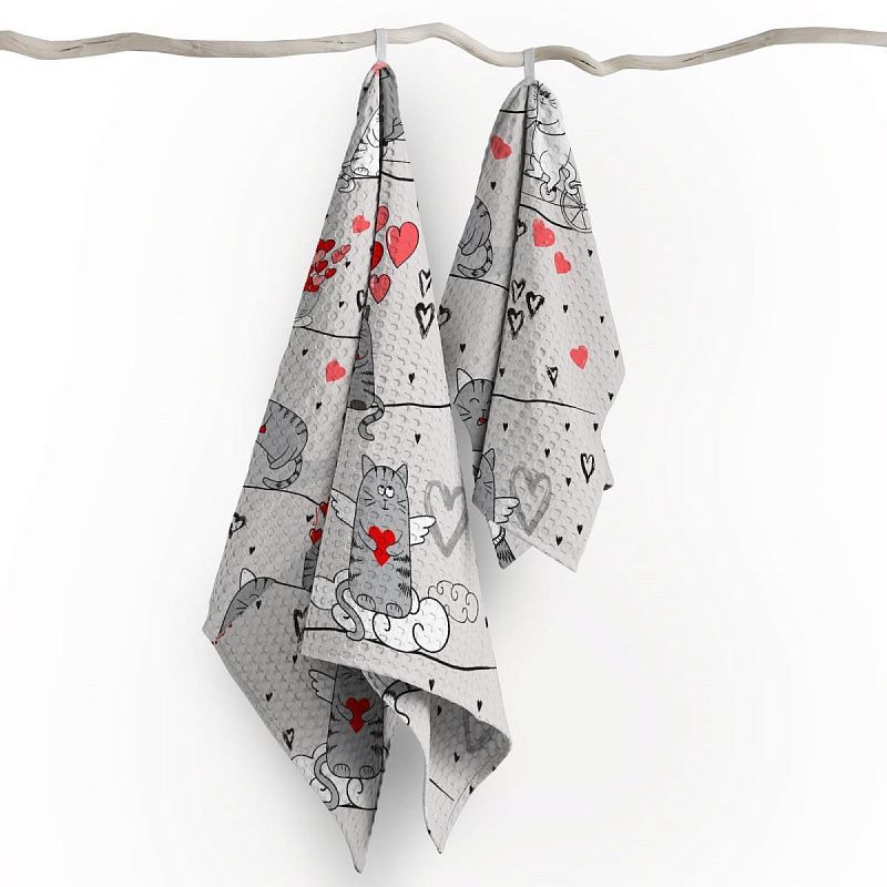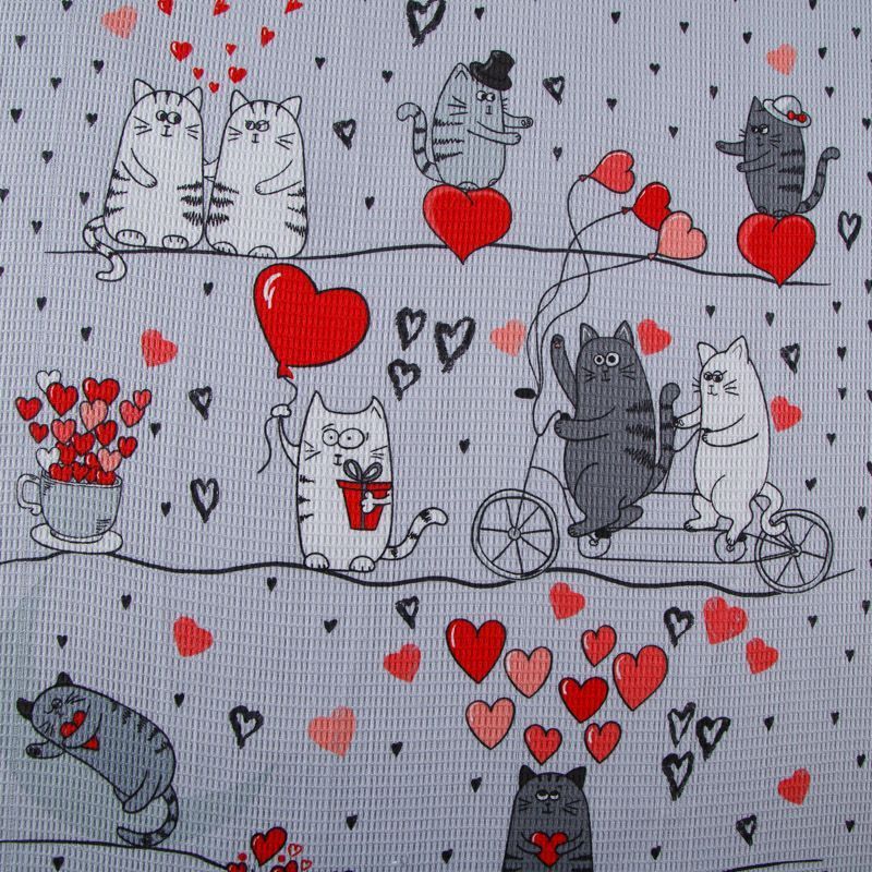 Полотно вафельное 007-13892 серый принтованный
