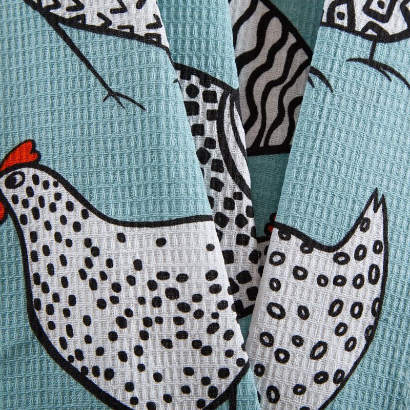 Полотно вафельное 007-15293 пыльно-бирюзовый принтованный