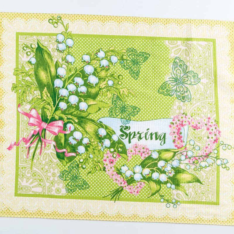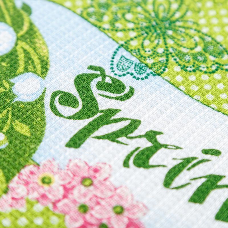Качественная натуральная хлопчатобумажная ткань, обладающая высокой гигроскопичностью, с весенним принтом. Универсальный материал, из которого  шьют кухонные полотенца, скатерти, прихватки, салфетки.