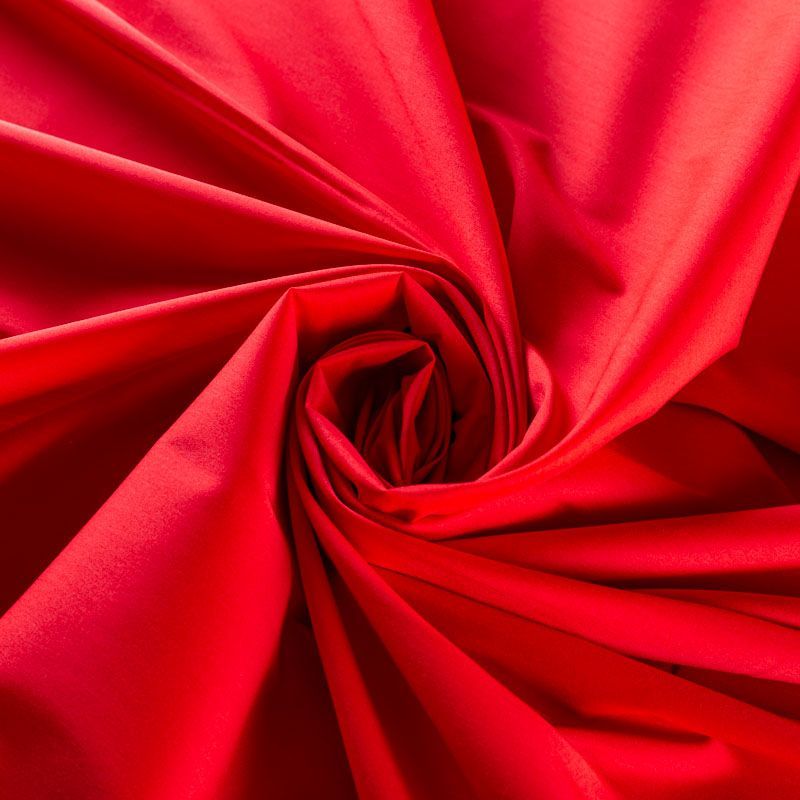 Однотонный плательно-рубашечный хлопковый поплин красного оттенка. Ткань лёгкая, слегка прозрачная, поверхность матовая, гладкая, приятная к телу, хорошо драпируется, тянется за счет эластана в составе. Прекрасно подойдет блузы, платья-рубашки, летнего сарафана, туники.