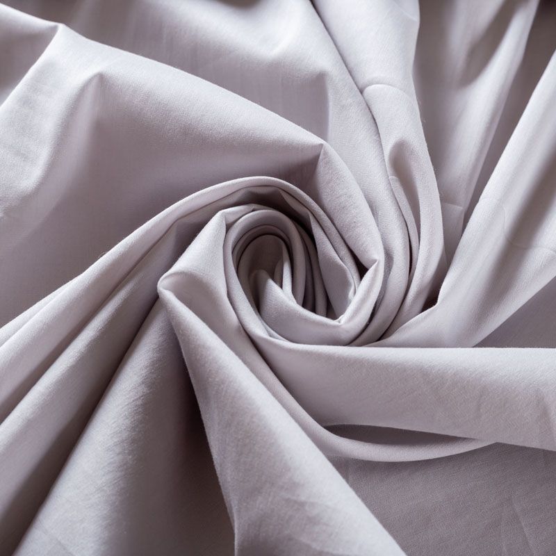 Однотонный плательно-рубашечный хлопковый поплин серого оттенка. Ткань лёгкая, слегка прозрачная, поверхность матовая, гладкая, приятная к телу, хорошо драпируется, тянется за счет эластана в составе. Прекрасно подойдет блузы, платья-рубашки, летнего сарафана, туники.
