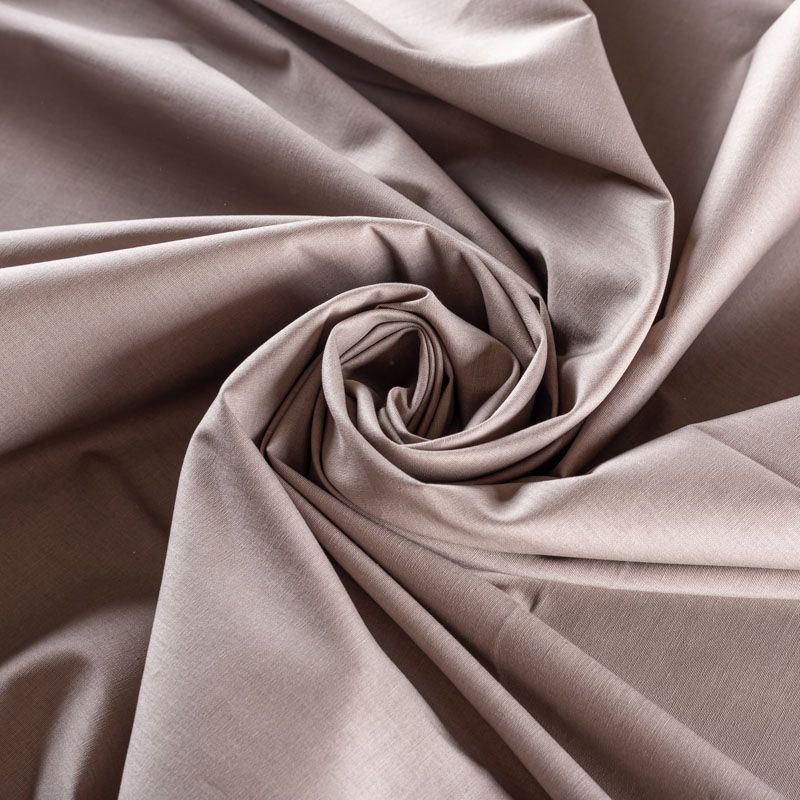 Однотонный плательно-рубашечный хлопковый поплин кофейного оттенка. Ткань лёгкая, слегка прозрачная, поверхность матовая, гладкая, приятная к телу, хорошо драпируется, тянется за счет эластана в составе. Прекрасно подойдет блузы, платья-рубашки, летнего сарафана, туники.