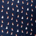 Плательно-рубашечный хлопковый поплин темно-синего оттенка с милым стилизованным принтом. Ткань лёгкая, не прозрачная, поверхность матовая, гладкая, приятная к телу, хорошо драпируется, тянется за счет эластана в составе. Прекрасно подойдет рубашки, блузы, платья-рубашки, летнего сарафана, туники, юбки.