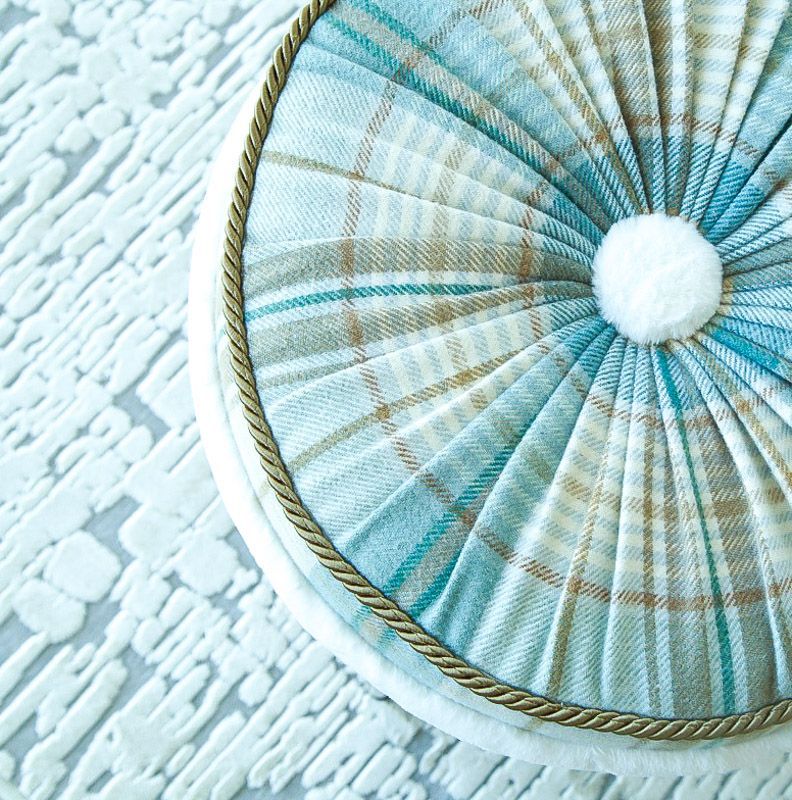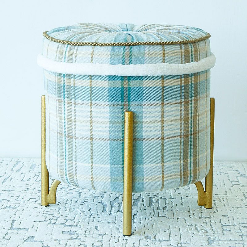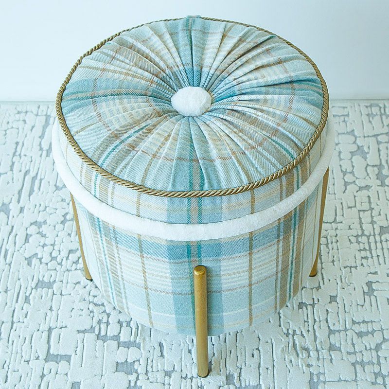 Пуф круглый D 43 см H 47 см голубая клетка 521336 в Уфе