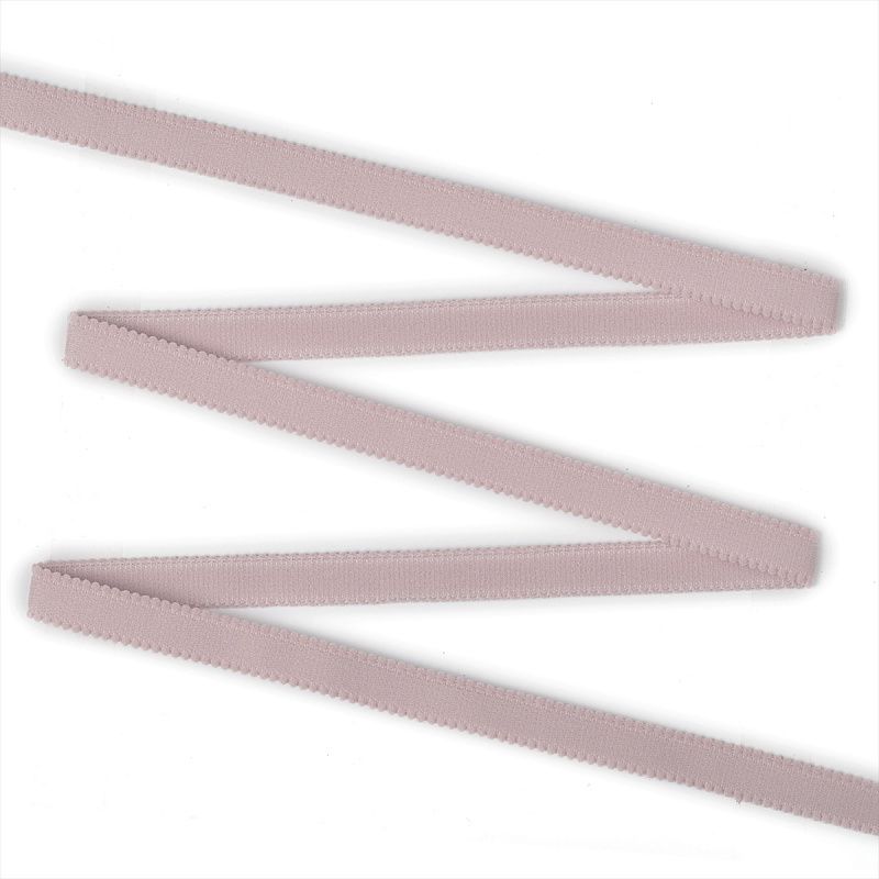 Классическая бретелечная резинка используется для обработки стана бюстгальтера, а также для бретелей. Достаточно тонкая, не тугая.  Края фигурные. Плотность 5.7 ± 0.3 г/м. Растяжимость 60 ± 10 %.