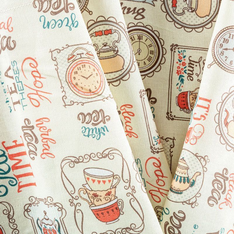 Ткань рогожка с цветным "кухонным" принтом на кремовом фоне. Это плотная хлопковая ткань с переплетением нитей две на две, благодаря этому создаётся структурное полотно отлично подходящее для пошива скатертей и салфеток, фартуков, сценических костюмов. Набирается объемом.
