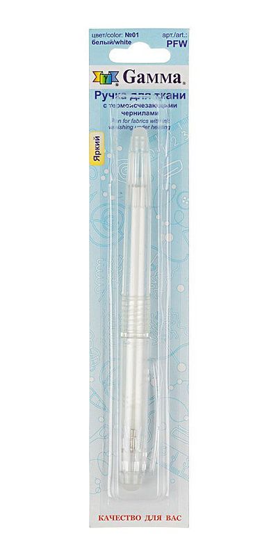 Ручка для ткани с термоисчезающими чернилами. Предназначена для временного нанесения тонких линий на ткань, кожзаменитель и натуральную кожу. Ручку необходимо перед использованием встряхнуть. Белая ручка может проявляться не сразу в течении 1-5 секунд. Чернила можно удалить водой или с помощью горячего утюга. Внимание! После удаления чернил они могут проявиться при низких температурах. Для полного удаления необходимо протереть водой. Избегайте хранения ручки при температуре ниже, чем 0 градусов и выше, чем 30. Оптимальная температура хранения - 20-25 градусов. Срок службы ручки зависит от индивидуальных особенностей использования. Храните ручку в вертикальном положении колпачком в низ.