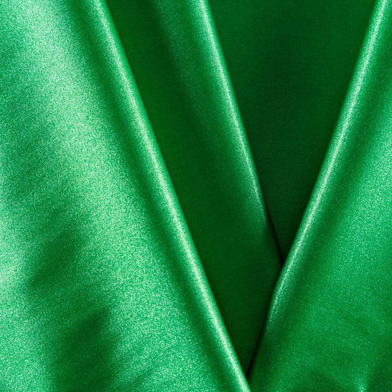 Итальянский сатин-коттон средней плотности в сочном зеленом оттенке с содержанием люрексовой нити. Поверхность ткань слегка шероховатая, с искрящимся блеском. Материал хорошо держит форму и драпируется, тянется за счет эластана в составе. Подойдет для пошива нарядных костюмов, платьев, жакета, юбки, брюк или шорт.