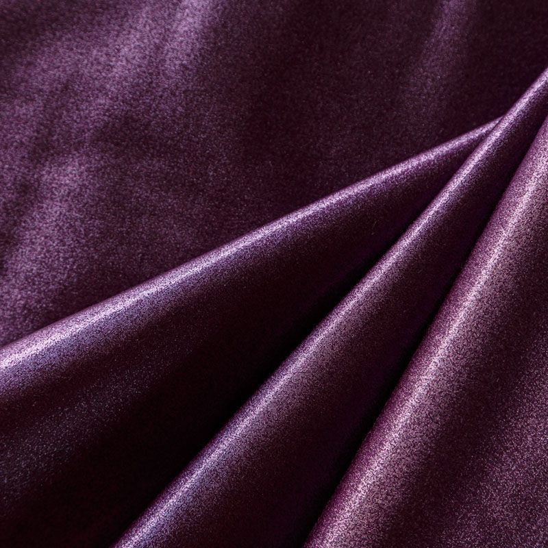 Итальянский сатин-коттон средней плотности в ежевично-сливовом оттенке с содержанием люрексовой нити. Поверхность ткань слегка шероховатая, с искрящимся блеском. Материал хорошо держит форму и драпируется, тянется за счет эластана в составе. Подойдет для пошива нарядных костюмов, платьев, жакета, юбки, брюк или шорт.