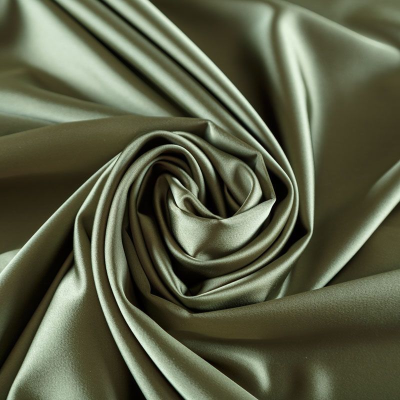 Пластичная ткань костюмно-плательной плотности с характерным сатиновым плетением, драпируется мягкими, красивыми складками, эластичная, поверхность имеет благородный сдержаный блеск. Роскошный сатин идеален для пошива нарядных и повседневных платьев, костюмов, брюк, юбок, бомберов.