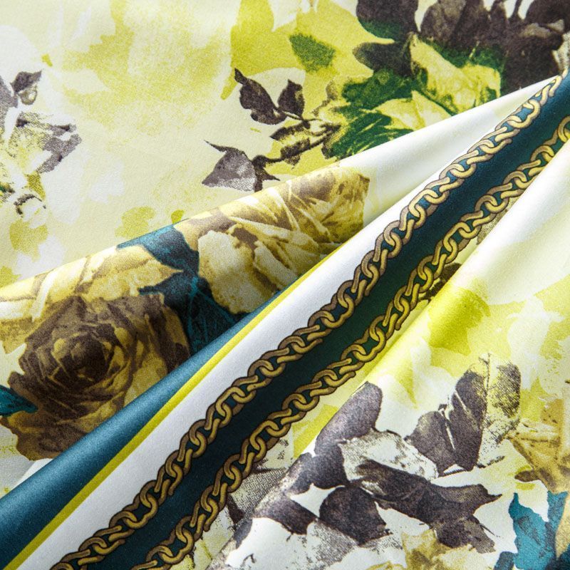 Сатин стрейч 001-07887 желтый принтованный в Уфе