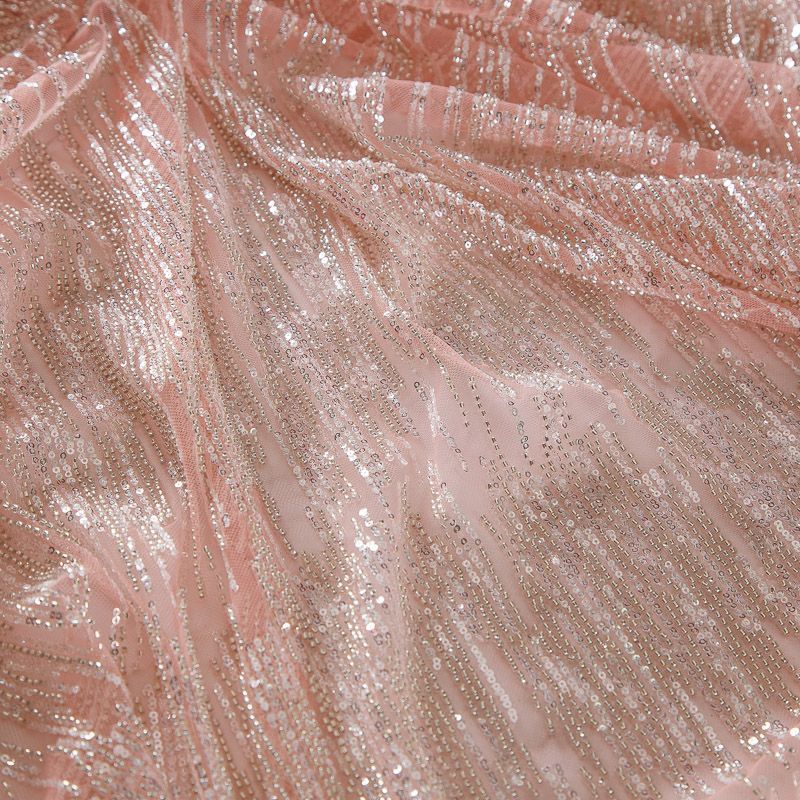 Сетка с бисером и пайетками 050-17615 кораллово-розовый в Уфе
