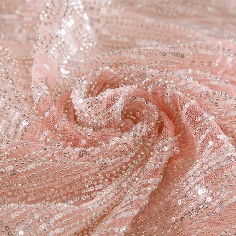 Сетка с бисером и пайетками 050-17615 кораллово-розовый