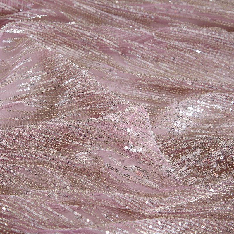 Сетка с бисером и пайетками 050-17745 розовый