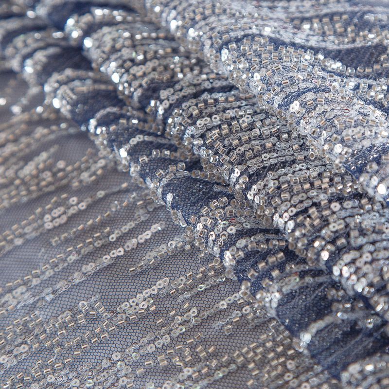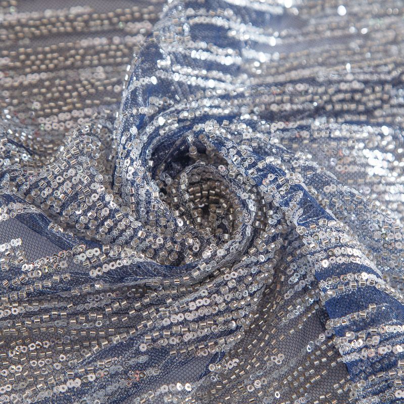 Сетка с бисером и пайетками 050-17746 синий в Уфе