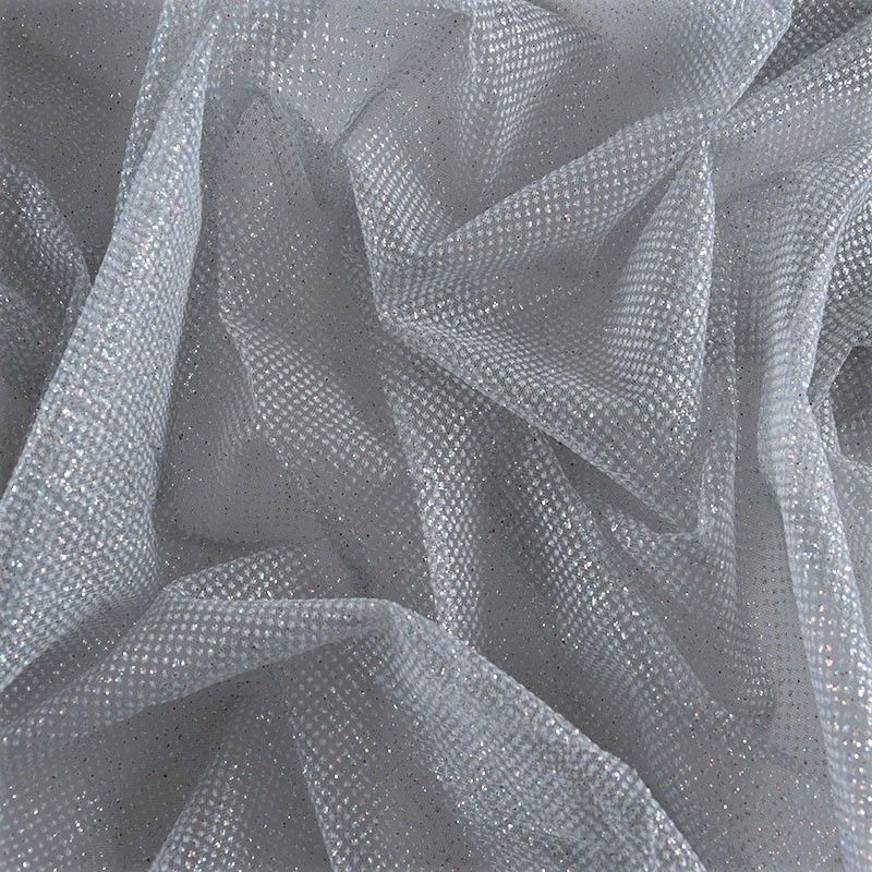 Рельефный прозрачный материал с сетчатой структурой. Поверхность полотна с металлизорованным глиттером, который придает материалу блеск и мерцание. Полотно жесткое, не тянется, отлично держит форму. Сетки нашли свое применение в процессе пошива и последующего декора вечерних нарядов, свадебных платьев, спортивной одежды, театральных костюмов.