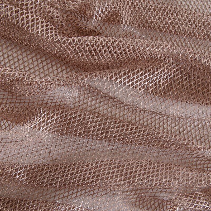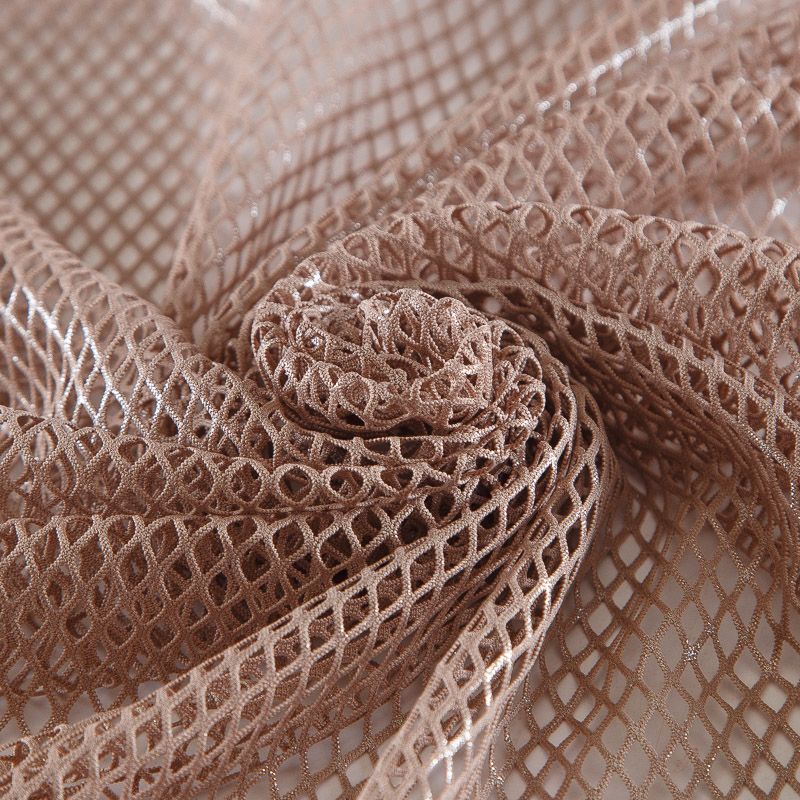 Рельефный полупрозрачный материал с сетчатой структурой. Поверхность полотна с металлизированным напылением, которое придает материалу легкий блеск и мерцание. Полотно мягкое, растяжимое во всех направлениях. Сетки нашли свое применение в процессе пошива и последующего декора вечерних нарядов, свадебных платьев, спортивной одежды, театральных костюмов.