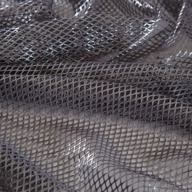 Рельефный полупрозрачный материал с сетчатой структурой. Поверхность полотна с металлизированным напылением, которое придает материалу легкий блеск и мерцание. Полотно мягкое, растяжимое во всех направлениях. Сетки нашли свое применение в процессе пошива и последующего декора вечерних нарядов, свадебных платьев, спортивной одежды, театральных костюмов.