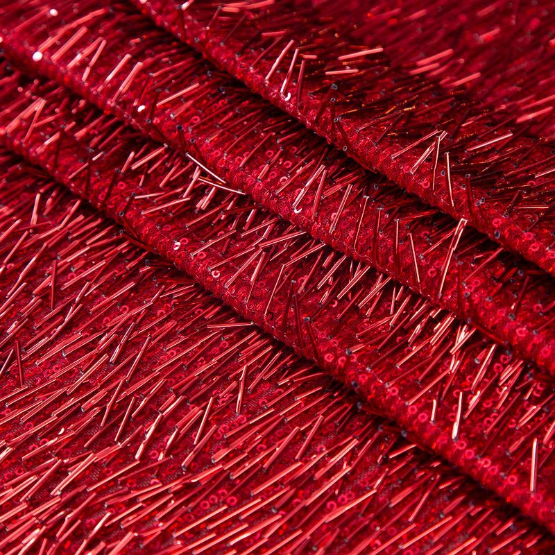 Сетка с пайетками и стеклярусом 050-19860 красный