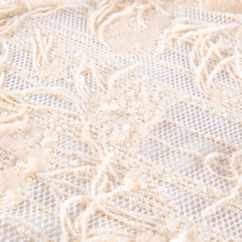 Сетка с вышивкой и пайетками 055-20762 сливочный