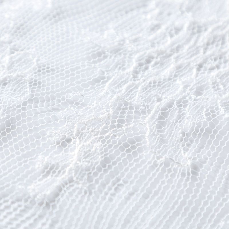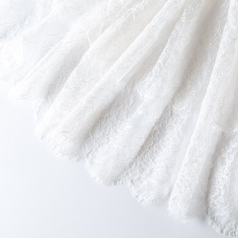 Французское шантильи молочного оттенка имеет тончайшее плетение волокон и состоит из нежнейшего кружева, которое используется для пошива свадебных нарядов, праздничных платьев. Вставки из кружева украсят любой офисный костюм, повседневное платье, юбку, блузу. Обе кромки кружева украшены фигурными фестонами.