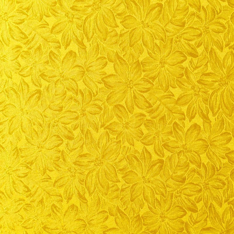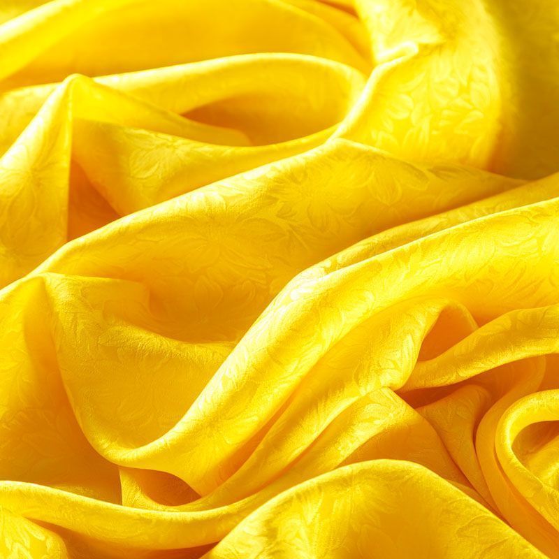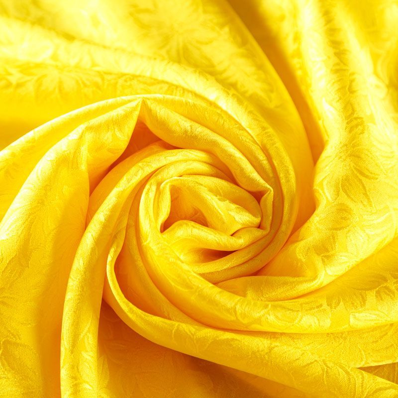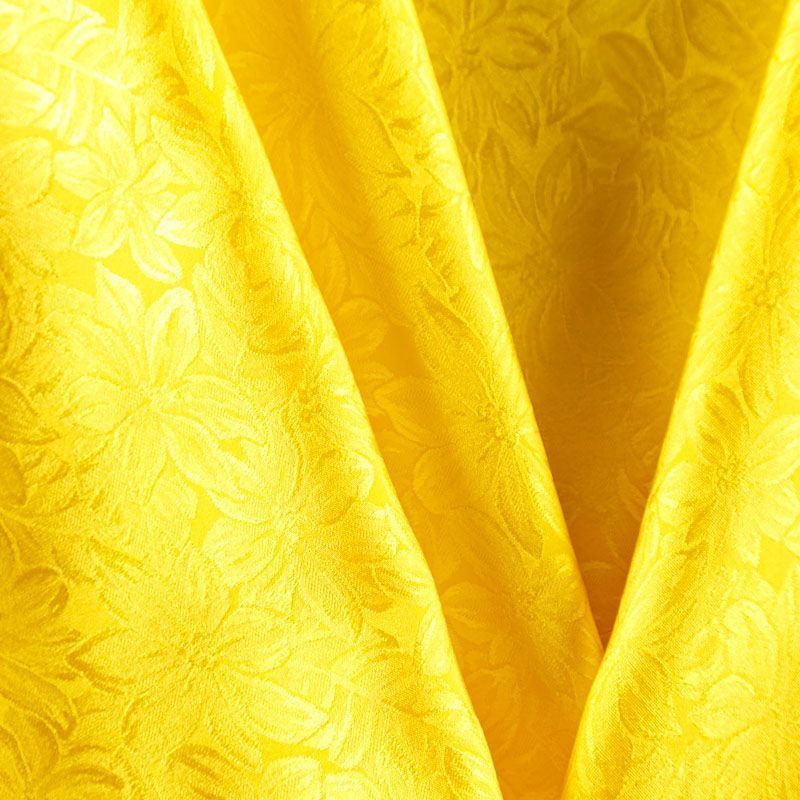 Итальянский шелк с жаккардовым цветочным узором в ярком желтом оттенке. Ткань тонкая, легкая, воздушная, хорошо драпируется и струится, не просвечивает. Подойдет для пошива блузы, рубашки, платья, юбки, костюма в пижамном стиле, топа.