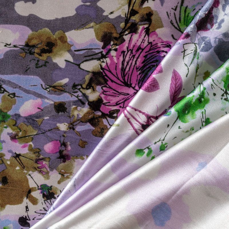 Итальянский атласный шелк с цветным растительным принтом. Вдоль кромки оформлен абстрактными полосками в тон рисунку. Можно использовать в изделии по длине ткани и объемом. Ткань средней плотности, не просвечивает, струится, хорошо драпируется. Поверхность глядкая, имеет благородный сатиновый блеск. Подойдет для смелых образов: летних платьев и сарафанов, как летящих фасонов, так и скроенных по косой, накидок, юбок, блузок, костюмов, широких брюк, домашней одежды.