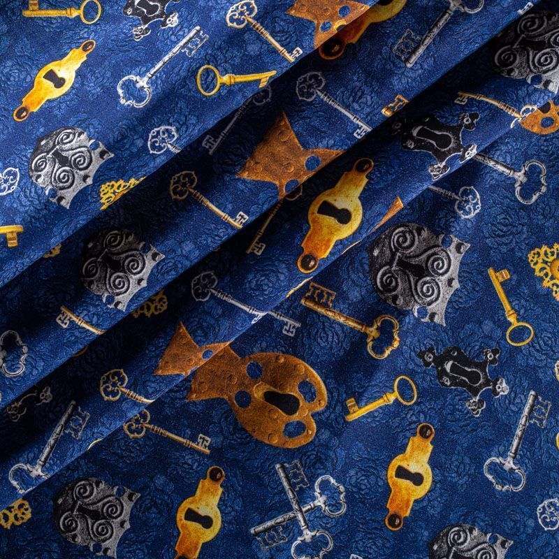Итальянский матовый шелк насыщенного синего оттенка с узнаваемым принтом от известного бренда. Ткань тонкая, не просвечивается, отлично драпируется, легкая и струящаяся, тянется за счет эластана в составе, лицевая сторона креповая, изнанка - атласная. Идеально подойдет для пошива платьев и сарафанов расклешенных моделей, с воланами, рюшами, летящих юбок, топов, блузки, рубашки, костюма в пижамном стиле.