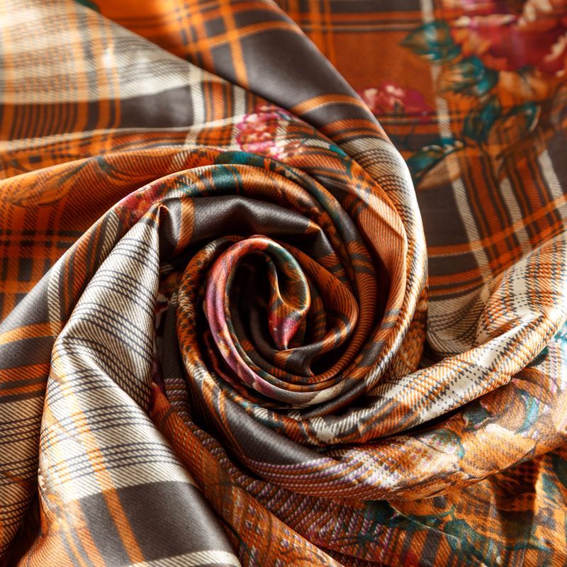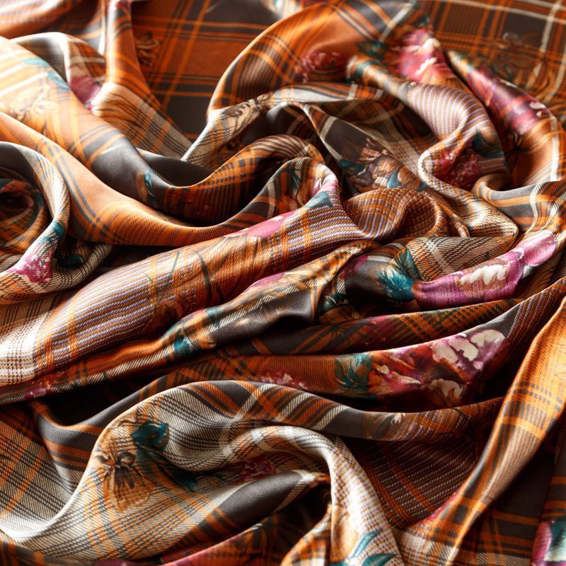 Шелк натуральный К156-78 рыже-коричневый принтованный в Уфе
