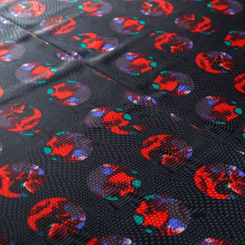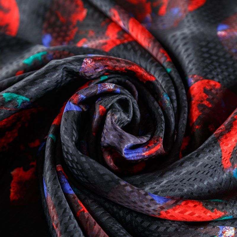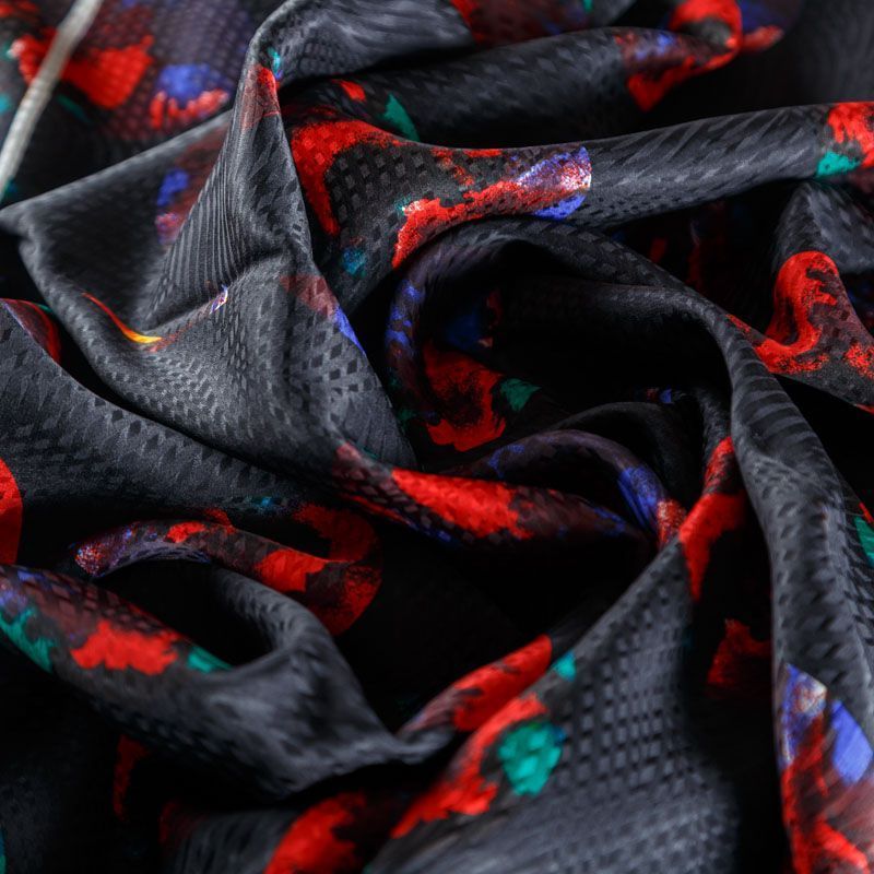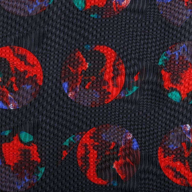 Итальянский матовый жаккардовый шелк с ярким "космическим" принтом. Ткань средней плотности, не просвечивает, струится, хорошо драпируется. Поверхность глядкая, имеет благородный сатиновый блеск. Подойдет смелых образов: летних платьев и сарафанов, как летящих фасонов, так и скроенных по косой, накидок, юбок, блузок, костюмов, широких брюк, домашней одежды.