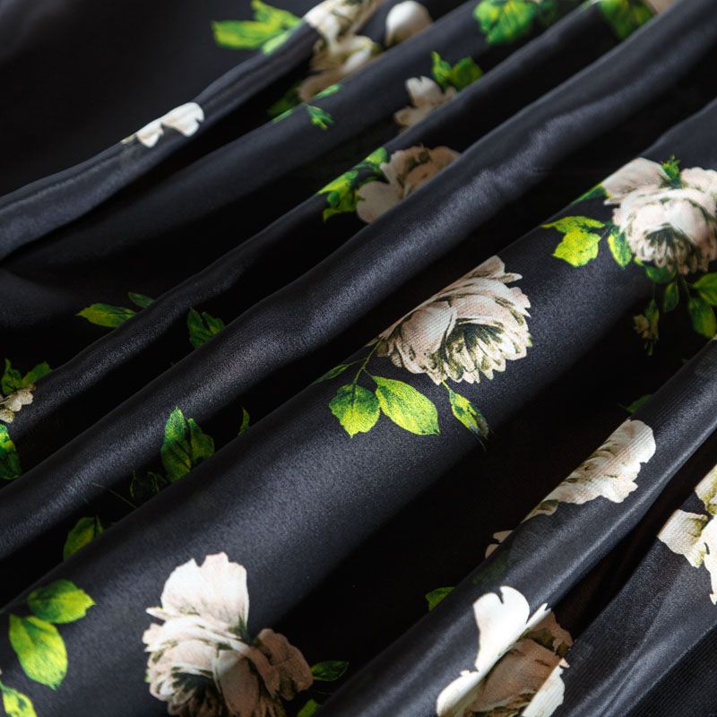 Шелк натуральный К24-006 черный принтованный