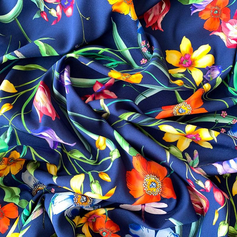 Шелк натуральный К32-155 темно-синий принтованный в Уфе