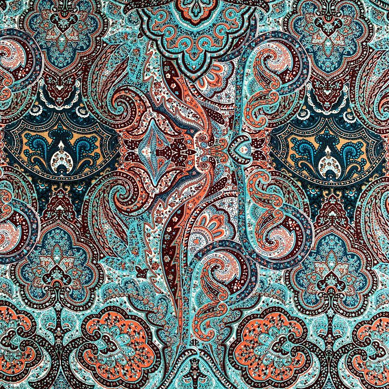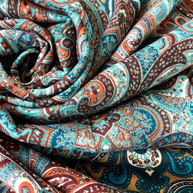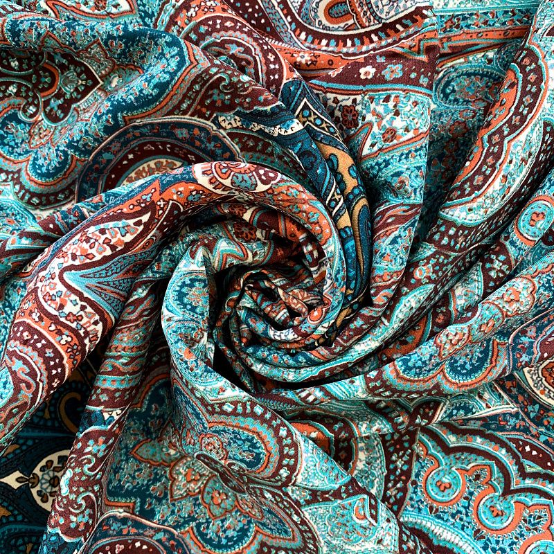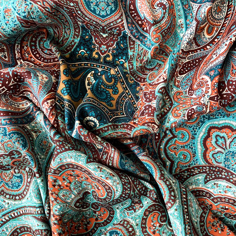 Шелк натуральный К32-242 бирюзово-коричневый принтованный в Уфе