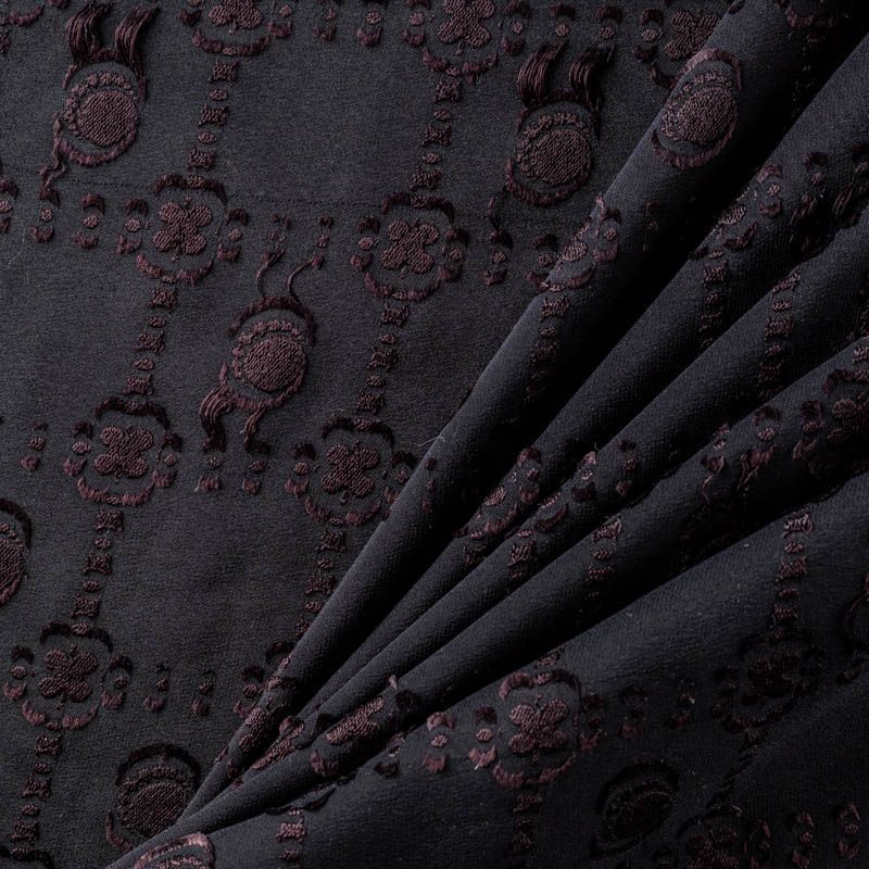 Шелк-жаккард, матовый, с набивным узором, хорошо драпируется.
