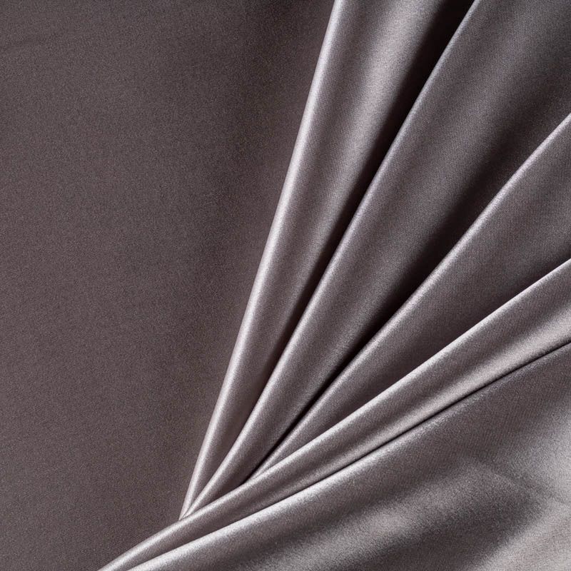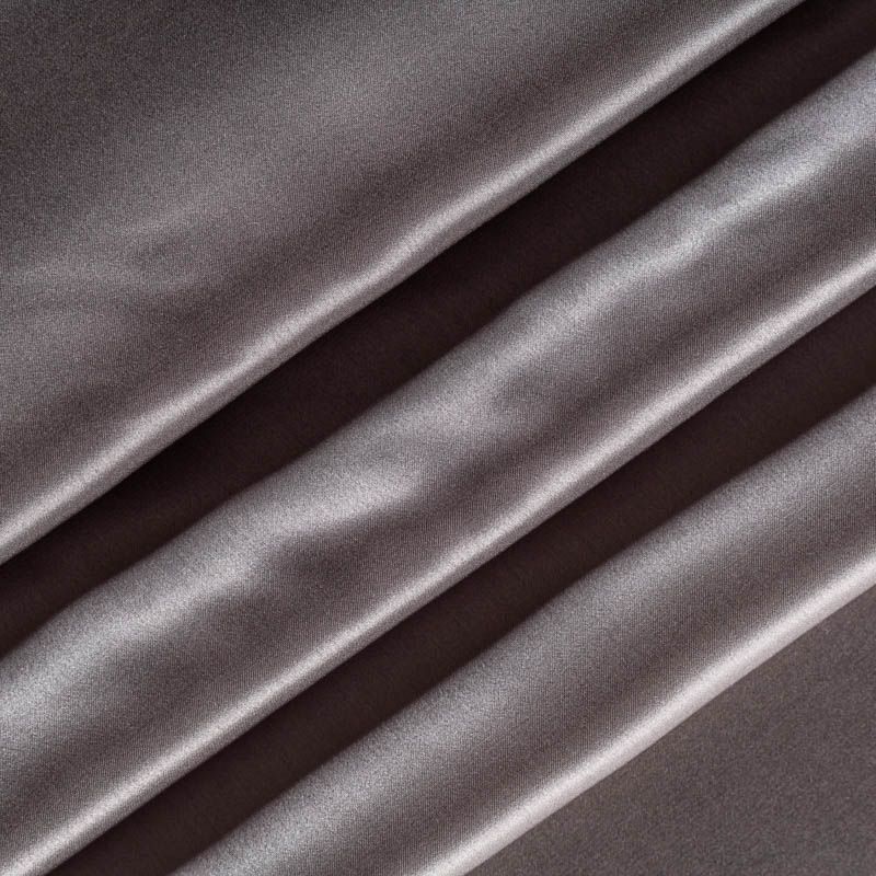 Итальянский атласный шелк стрейч дымчатого оттенка. Мягкий и пластичный, хорошо драпируется, легкий и нежный, приятный к телу, с роскошным блеском. Отличный смотрится в классических блузках, юбках, туниках, гармонично сочетается с деловым костюмом, а также с джинсами, юбками.