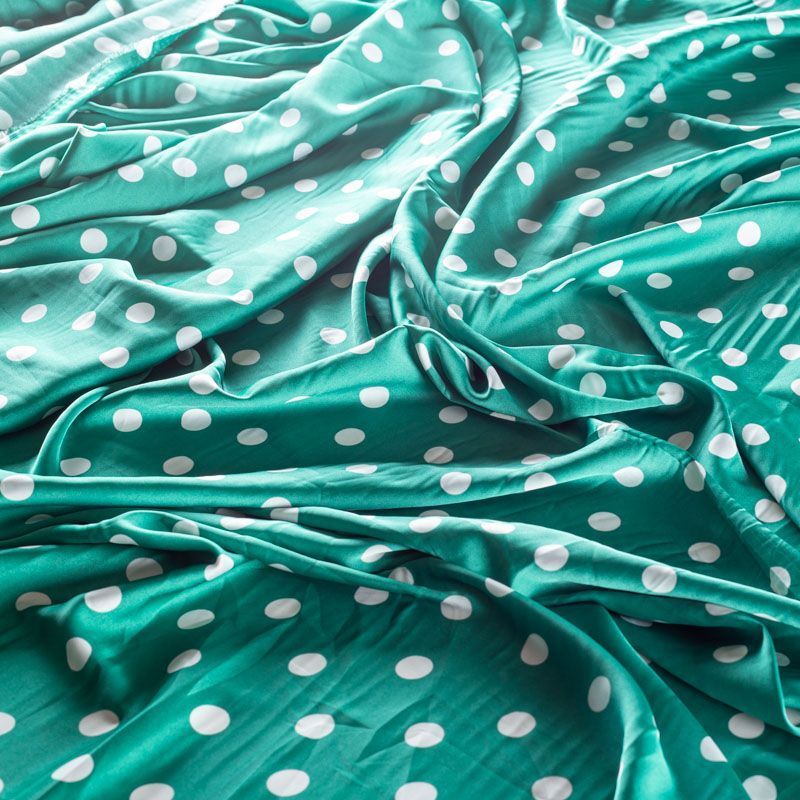 Тонкая, легкая, струящаяся ткань, не просвечивает, очень нежная и прятная к телу, обладает благородным атласным блеском, хорошо драпируется, тянется за счет эластана в составе. Идеально подойдет для пошива блузок, платьев и юбок, а также топов, платков, домашней одежды.