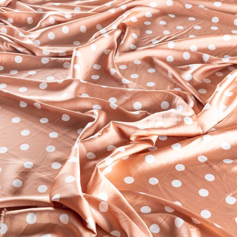 Тонкая, легкая, струящаяся ткань, не просвечивает, очень нежная и прятная к телу, обладает благородным атласным блеском, хорошо драпируется, тянется за счет эластана в составе. Идеально подойдет для пошива блузок, платьев и юбок, а также топов, платков, домашней одежды.