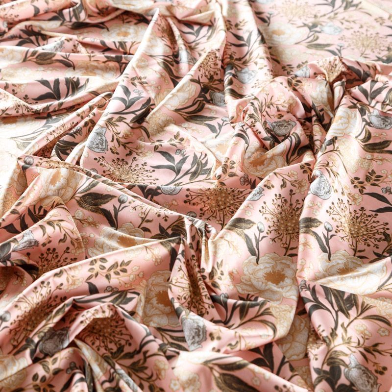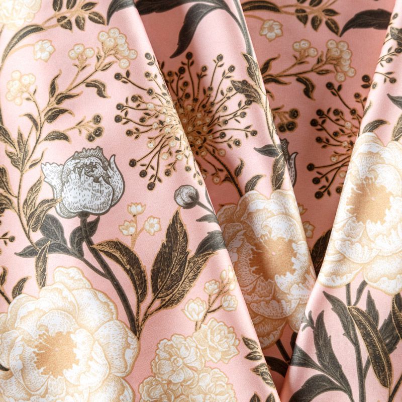 Шелк синтетический 065-02651 пудрово-розовый принтованный