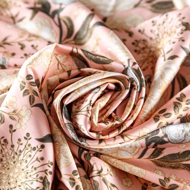 Шелк синтетический 065-02651 пудрово-розовый принтованный в Уфе