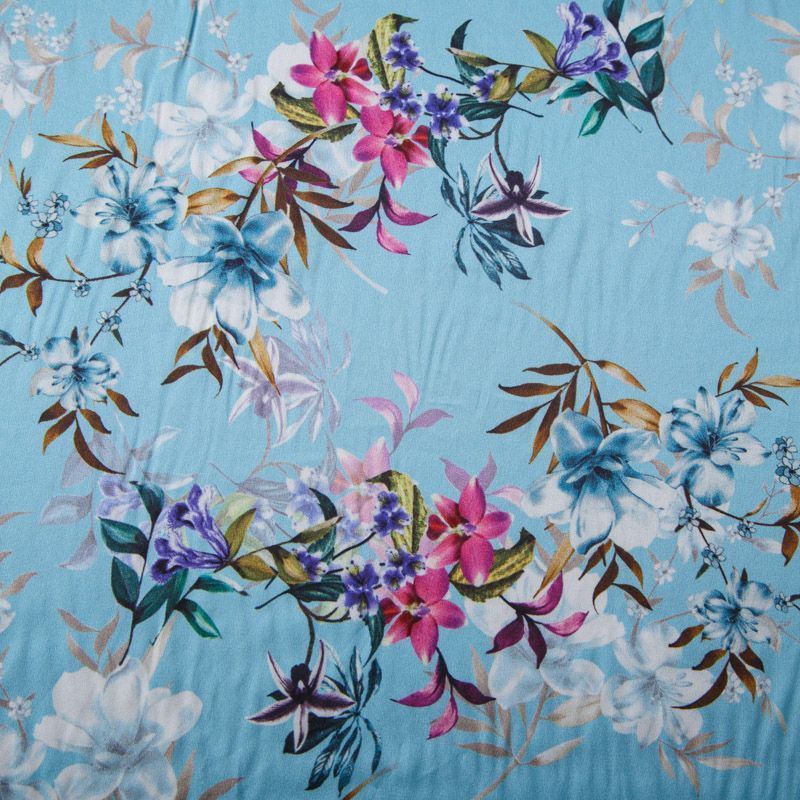 Шелк синтетический 065-13594 голубой принтованный