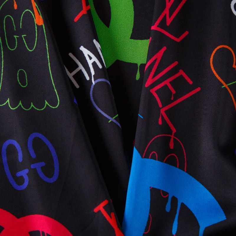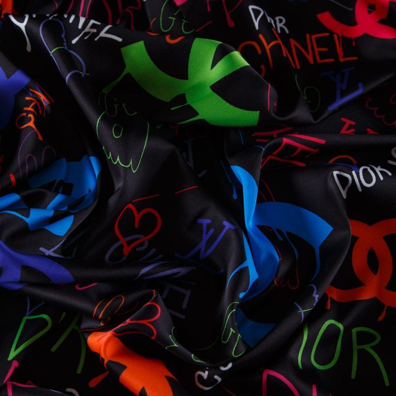 Шелк синтетический 065-13930 черный принтованный