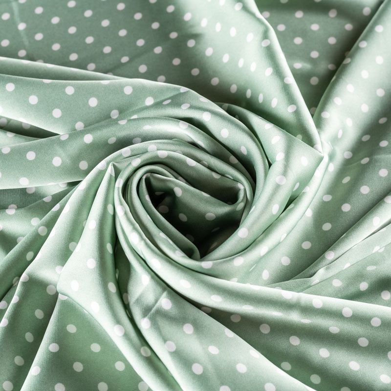 Тонкий, струящийся, очень нежный, приятный к телу, обладает лёгким благородным блеском, хорошо драпируется. Размер гороха - 5 мм