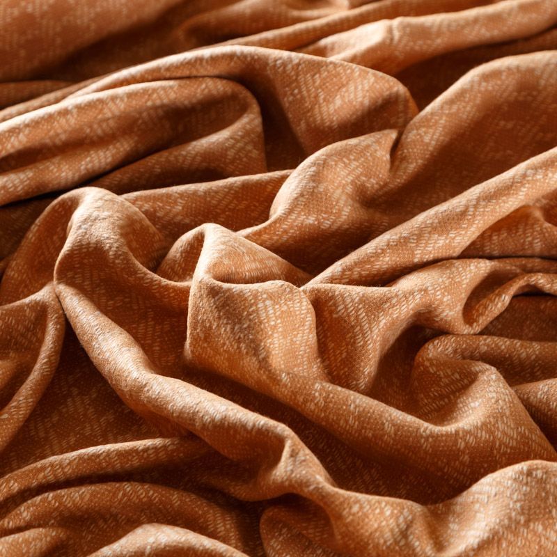 Итальянская фактурная шерсть в карамельном оттенке. Ткань хорошо держит форму, приятная на ощупь, гибкая, средней толщины, при этом высокой плотности. Подойдет для пошива теплого костюма, юбки, пальто, куртки, жакета, парки, кейпа, жакета или пончо.