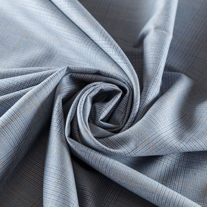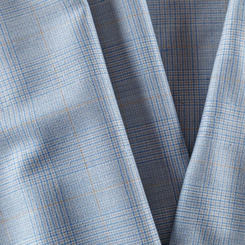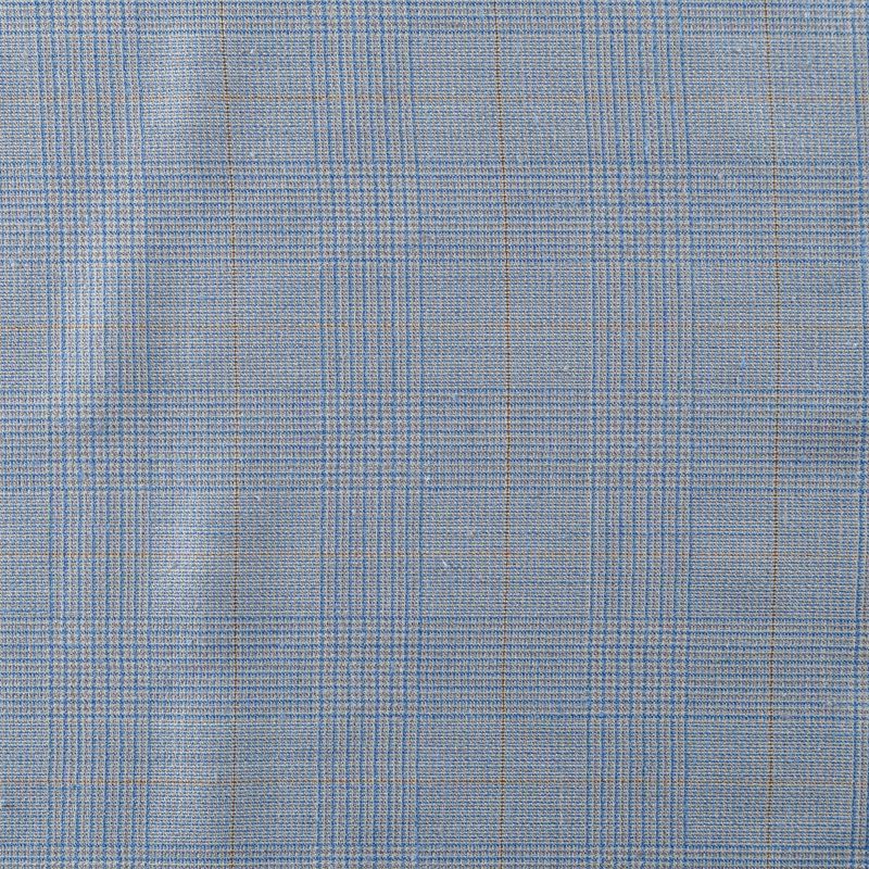Итальянская костюмно-плательная шерсть средней плотности, мягкая и приятная на ощупь, немного тянется, формоустойчива, хорошо драпируется и образует устойчивые складки. Сочетание линий голубого, молочного и шафранового цветов образует сложную красивую клетку тартан. Ткань отлично подойдет на костюмы, юбки, брюки, платья, жакеты, для пошива школьной формы.