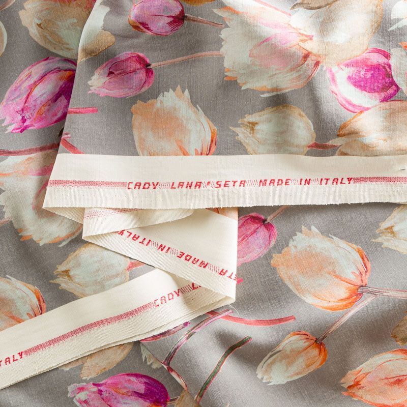 Итальянская плательная шерсть серо-стального оттенка с акварельными бутонами тюльпанов смотрится благородно и аристократично. Ткань очень пластичная, имеет в составе шелк, не просвечивает, мягко драпируется, а также практически не мнется. Прекрасно подойдет для платья, юбки, легкого жакета и даже брючных изделий на прохладный весенне-осенний сезон.