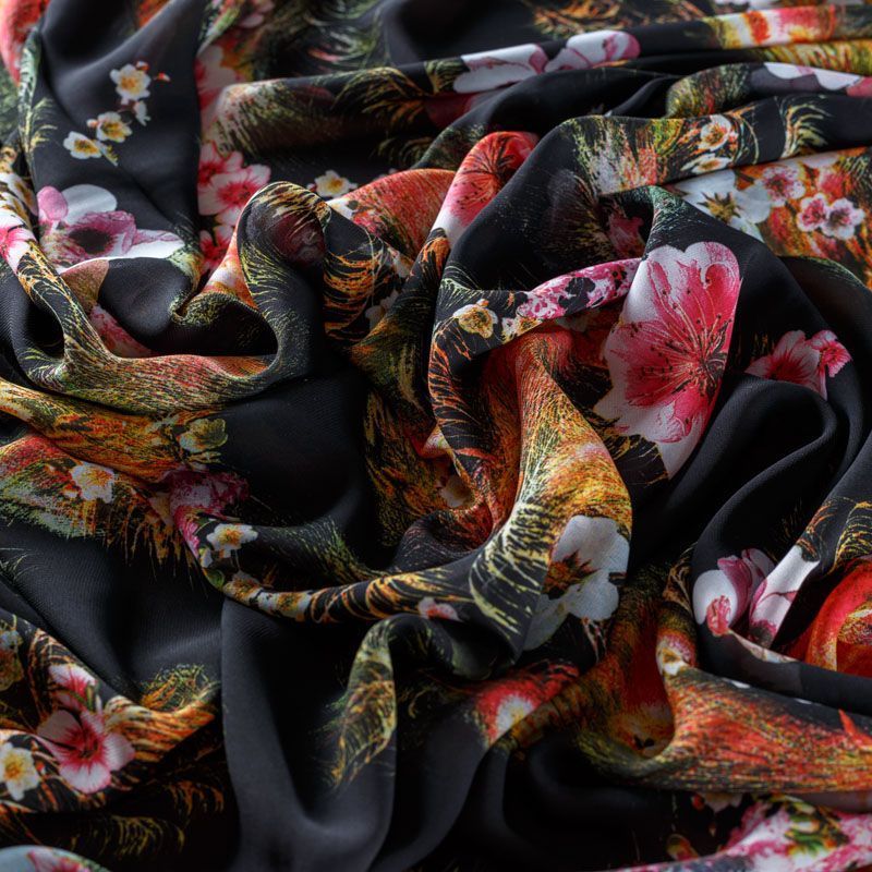 Шифон 068-08378 черный принтованный