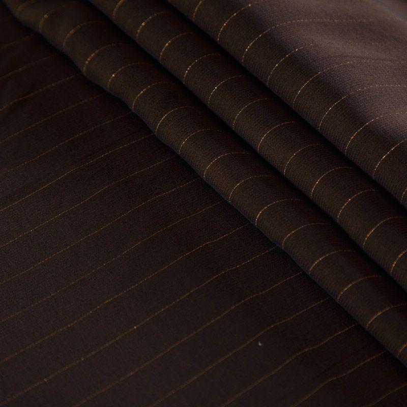 Итальянский смесовый шифон Gucci в оттенке темного шоколада с тонкими полосками люрекса. Полоски расположены горизонтально по ширине рулона.