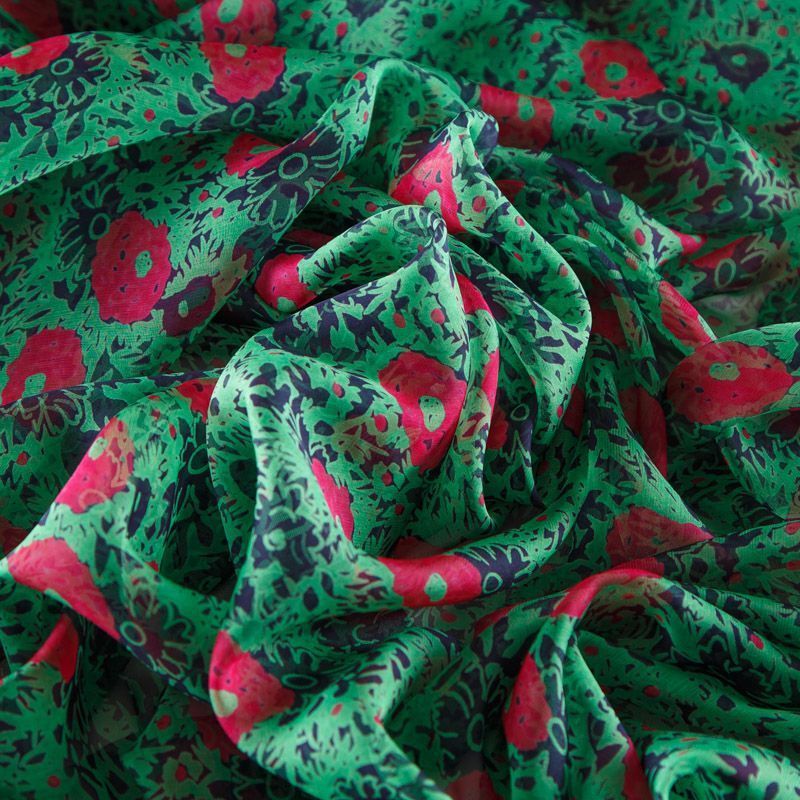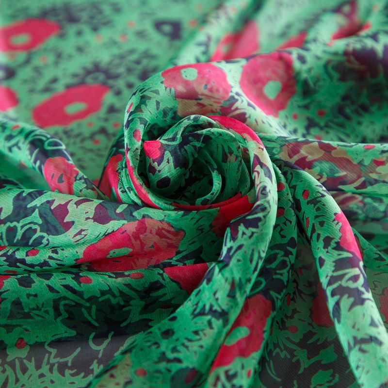 Шифон шелковый 068-12255 зеленый принтованный в Уфе