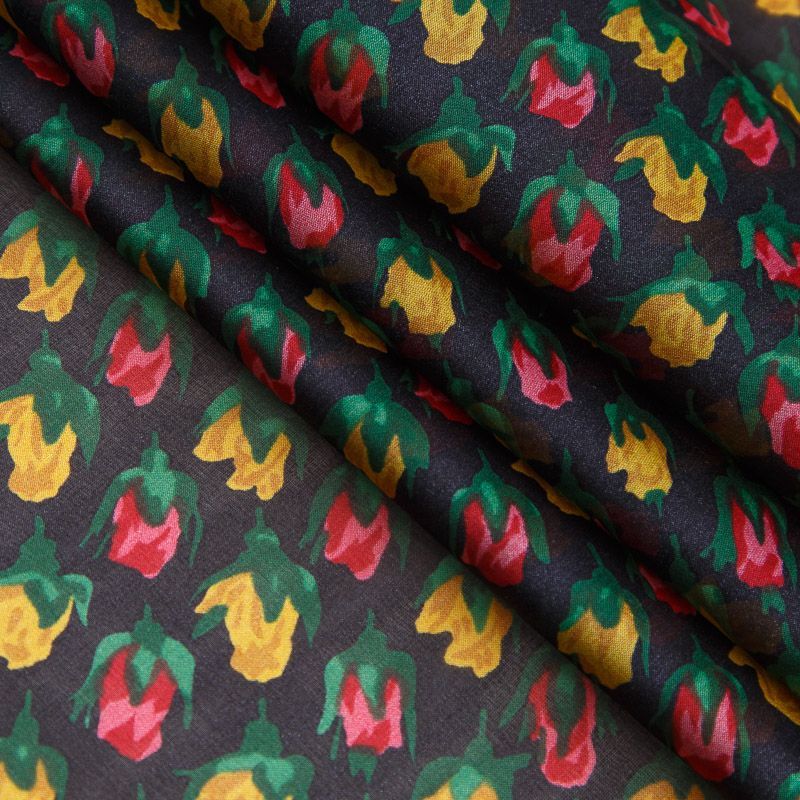 Шифон шелковый 068-17094 черный принтованный в Уфе